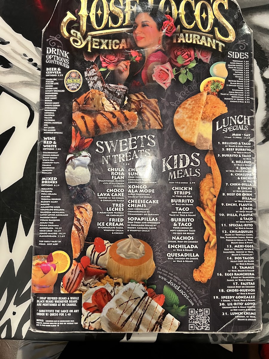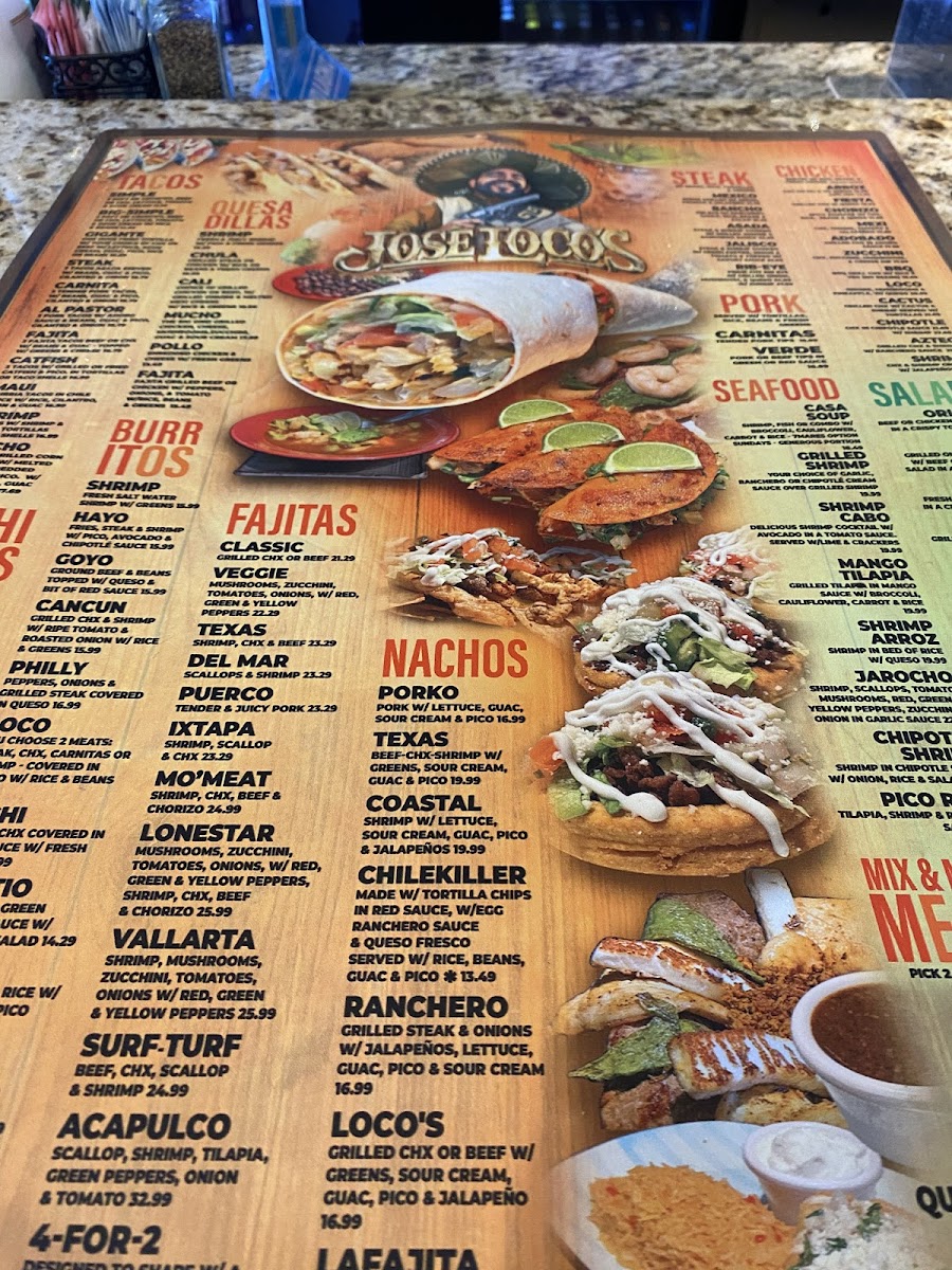Welcome to Jose Locos, a vibrant culinary gem located at 935 N Glenstone Ave in Springfield, MO. This captivating eatery lets you savor authentic Mexican cuisine with a fresh twist. The menu is a delightful journey, featuring mouthwatering appetizers like the Big Trio Chicharron and Choriqueso, alongside complementary hors d'oeuvres such as Beef Nachos and Guacamole Fresco. For salad lovers, the Shrimp Taco Salad and the colorful China Salad are must-tries, showcasing fresh ingredients and vibrant flavors.